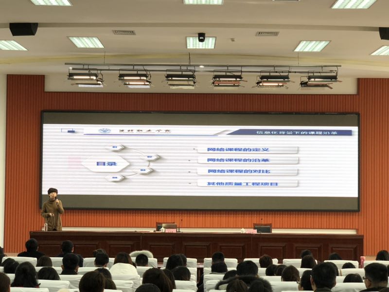 本场培训的内容有两项。一是由国际商务学院青年教师安敏作了《青年教师的成长之路--以赛促成长》,二是由教务处副处长李艳做了《信息化背景下的课程沿革》的分享。安敏老师从比赛介绍、备赛过程、信息手段、成长感悟4个方面入手,分享了在信息技术广泛应用的背景下全国职业院校教学能力大赛的参赛心得,详细讲解了备赛过程中研读文件、选取题材、搜取资料以及构思框架等过程。她通过参加各种大赛得出的切身感受就是,比赛不是一个人的荣誉,而是集体智慧的结晶;通过参加各种比赛,切实提升了自己对课程的理解、对技能的把握等教学能力,促进了教学质量的全面提升,真正实现了“以赛促教”的目标。李艳以信息化课程改革为核心,从网络课程的定义、课程沿革、课程对比、质量工程项目4个方面详细讲解了国家精品课程、精品资源共享课、精品在线开放课程、信息化混合式课程、微课等五种课程的特点和发展演变历程,使新入职的青年教师对当下前沿的课程改革项目有了清晰的认知。