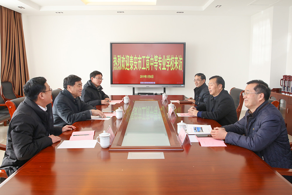 1月8日上午,泰安市工商中等专业学校校长张新勇一行4人来我校就“三二”连读合作办学项目交流访问,副院长贺志强、招生就业处、机电工程学院负责人参加座谈。
