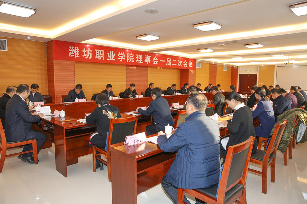 张洪全在致辞中向理事会单位和理事对学院事业发展的关心、支持表示了感谢。他从党的建设、优质高职院校建设、事业发展基本建设、产教融合校企合作等方面介绍了一年来学院发展情况。他强调,高等教育正处于转型并向高质量发展的关键时期,全省、全国的优质高职院校建设,教育部启动的“中国特色高水平高职院校和专业建设计划”,给学院事业发展带来了新的机遇和挑战。下一步,理事会要以习近平新时代中国特色社会主义思想为指导,认真贯彻落实党的十九大精神和全国教育大会精神,坚持“抓党建,促创建”工作主线,从学院办学实际出发,进一步加大制度建设力度,构建现代大学制度,推进依法治校,推进学院治理体系和治理能力现代化;进一步发挥联系社会、服务社会的作用,深化体制机制改革,建立健全政府、企业、社会共同支持和监督学院发展、协同育人的长效机制;进一步拓宽发展思路,抢抓新旧动能转换和“四个城市”建设的重大机遇,加快集聚各类优质资源,加强学科团队和平台建设,创新人才培养模式,朝着更高发展目标迈进;进一步助推学院提升人才培养质量和综合办学实力,努力创建“潍坊龙头、全省前列、全国一流”高水平高职院校,为区域经济社会发展作出更大贡献。