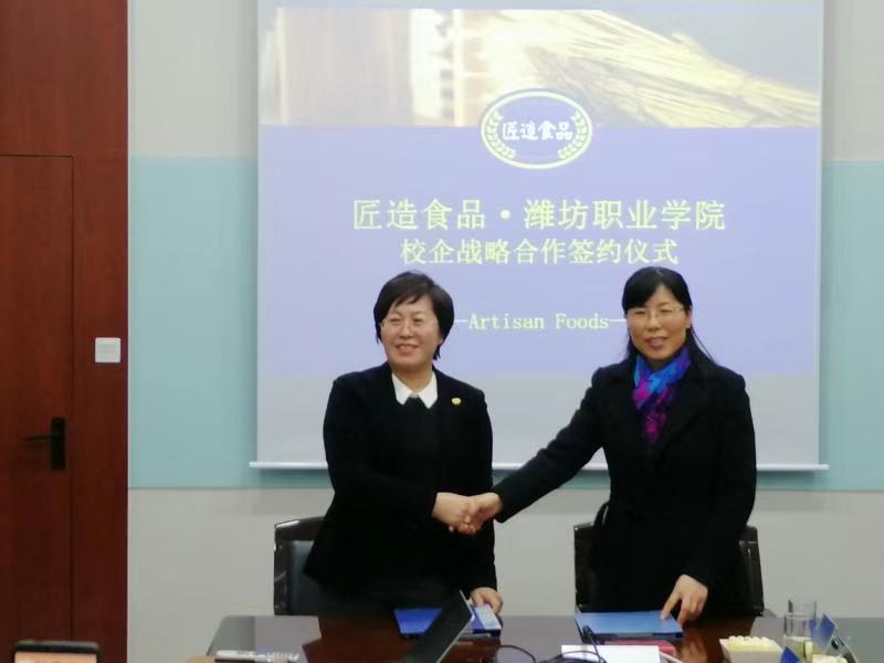 12月19日下午,bv伟德与山东匠造烘焙食品有限公司战略合作协议签订仪式暨食品药品学院校外实习基地、教师企业工作站授牌仪式在山东匠造烘焙食品有限公司举行。学院副院长赵君堂、山东匠造烘焙食品有限公司总经理邓洁出席仪式,食品药品学院负责同志、教学管理办公室主任、食品技术教研室主任、产学合作办公室工作人员及部分骨干教师、山东匠造烘焙食品有限公司相关人员参加了活动。