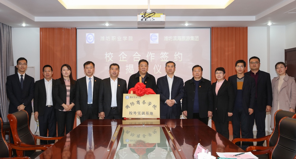 12月18日下午,bv伟德与滨海旅游集团校外实训基地揭牌仪式在滨海校区会议室举行。学院党委书记张洪全,滨海区党工委副书记李树森,滨海旅游集团党委书记、董事长臧传奎,滨海旅游集团党委副书记王宁出席,滨海旅游集团、学院科技处、国际商务学院相关负责人参加了活动。学院副院长贺志强主持仪式。