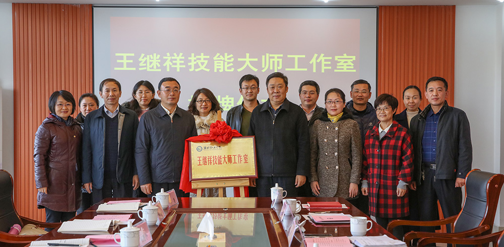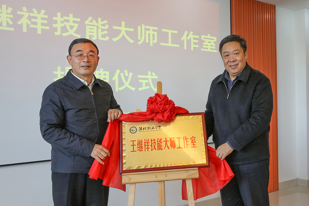 张洪全为王继祥颁发bv伟德国际1946兼职教授聘书并共同为王继祥技能大师工作室揭牌。
