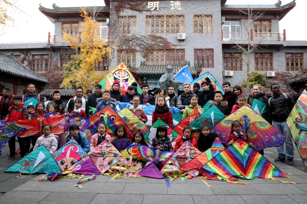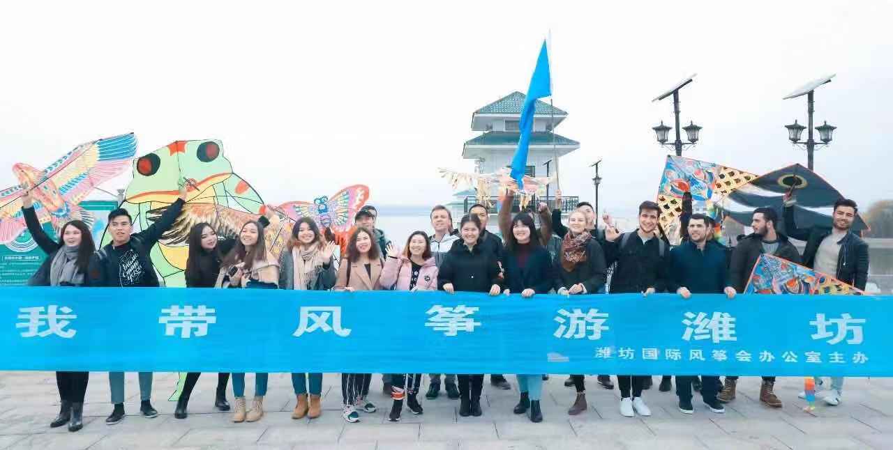 bv伟德留学生参加“我带风筝游潍坊”主题活动