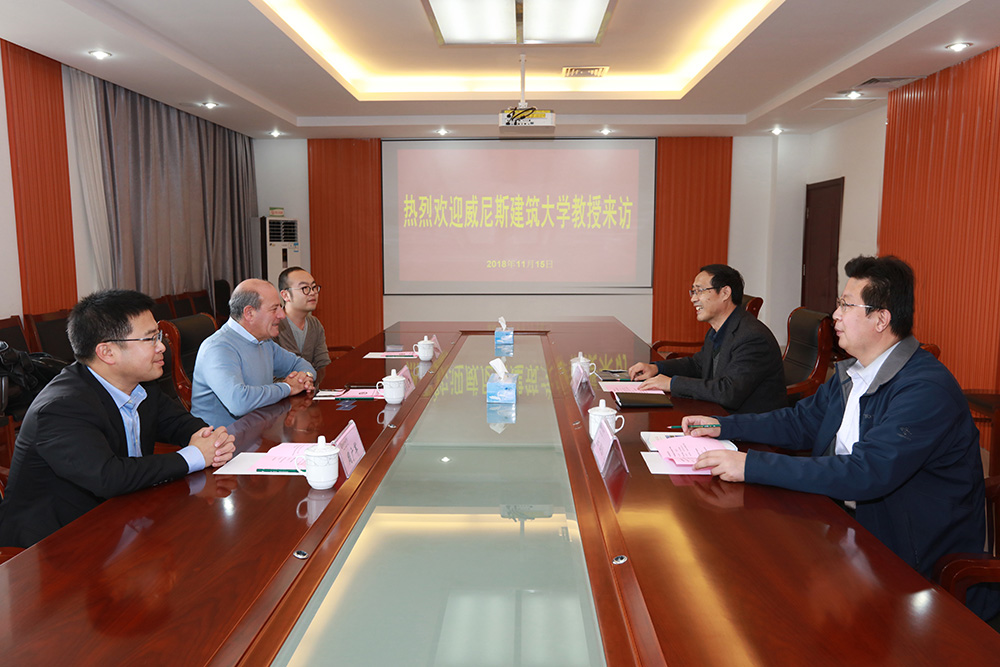11月15日,意大利威尼斯建筑大学Antonio Pantuso教授一行三人来bv伟德访问,学院副院长赵君堂在滨海校区接待了客人,宣传统战处负责人参加座谈交流。