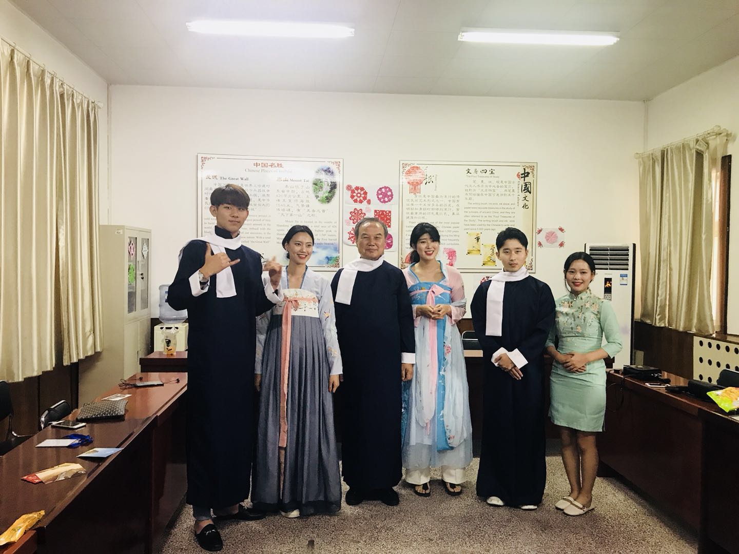 为使活动达到预期效果,bv伟德对韩国研修团相关活动进行了精心筹划,活动安排紧凑,课程设置丰富。不仅设有传统的汉语课,还开设了茶艺、汉服旗袍、剪纸、太极拳、中国画等中国传统文化体验课。组织参观了bv伟德滨海校区及滨海城市中心,开展了包饺子、中韩师生结对子和才艺展示联谊会等形式多样、寓教于乐的课外活动。同时,还组织学生深入了解了潍坊文化名胜,参观了杨家埠木版年画及风筝制作现场、青州古城、博物馆等,使学生们在较短时间内最大限度地提高了汉语水平,亲身感受了博大精深的中国文化及潍坊当地文化特色。