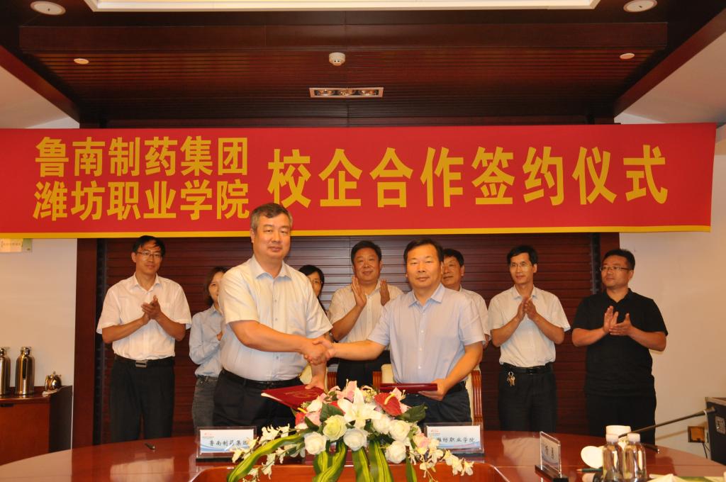 贺志强与鲁南制药集团股份有限公司副总经理李宝杰代表双方正式签署战略合作协议,校企双方将在人才培养、专业共建、实训基地共建、产学研合作、学生实习就业等方面开展全面深度合作。