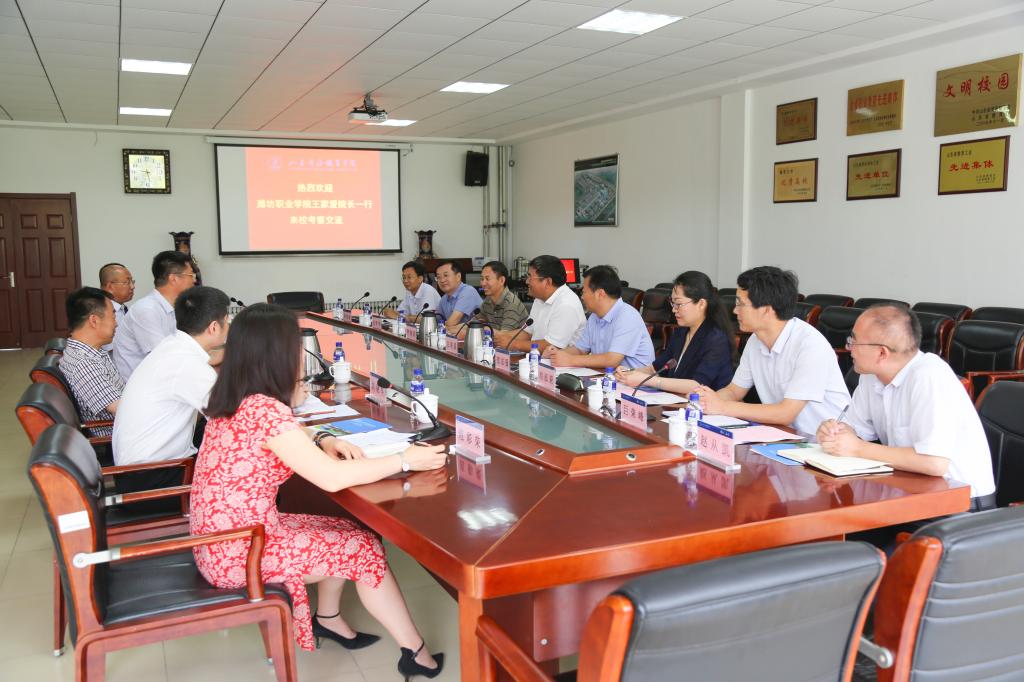 王家爱一行重点考察了烟台职业学院和山东商务职业学院,学习了两所职业学院在优质高职院校建设、产教融合、校企合作、技能大赛、招生就业、科研工作、实训基地建设等方面先进经验做法。相关部门就专业发展培育、学分制改革、科研工作以及质量工程项目等方面进行了对口交流并参观了两校的实训基地。