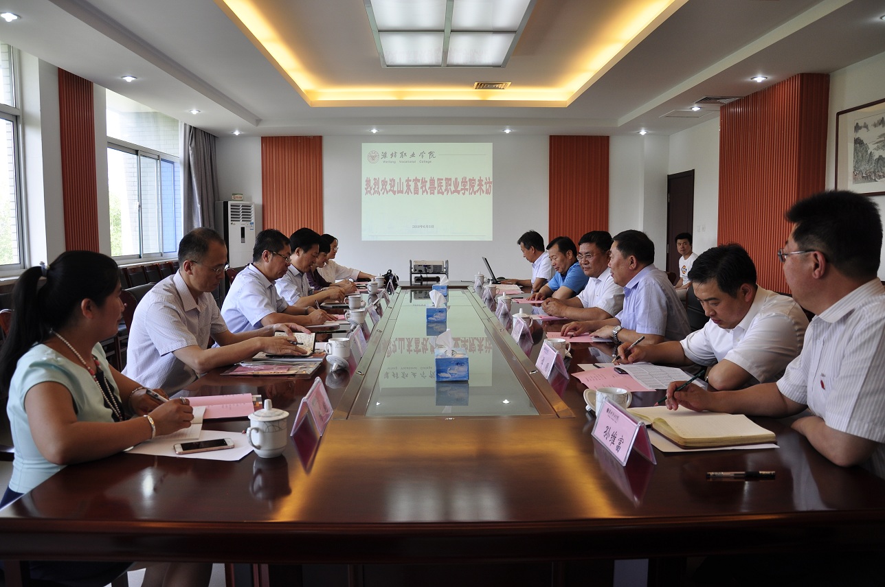6月5日,山东畜牧兽医职业学院院长李学太一行6人来bv伟德考察交流。院长王家爱、党委副书记宋桂言、副院长贺志强、党委委员、办公室主任谭明会见客人,组织人事处、宣传统战处负责同志参加座谈交流。