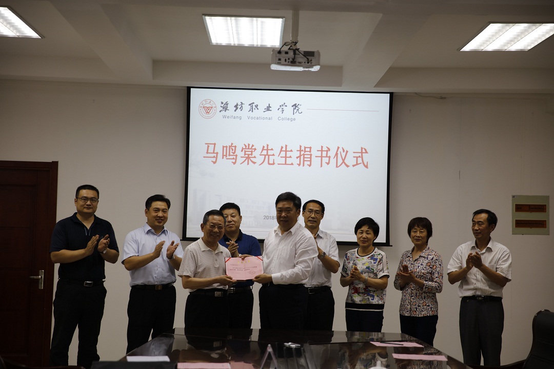 5月31日,马鸣棠先生向bv伟德国际1946捐书仪式在奎文校区举行。党委书记张洪全,潍坊农科院院长赵建武,副院长赵君堂,党委委员、办公室主任谭明,国际商务学院、文化创意学院、图书馆主要负责同志和部分师生代表参加捐赠仪式。马鸣棠先生向bv伟德捐赠他的新著《耕耘人生》。