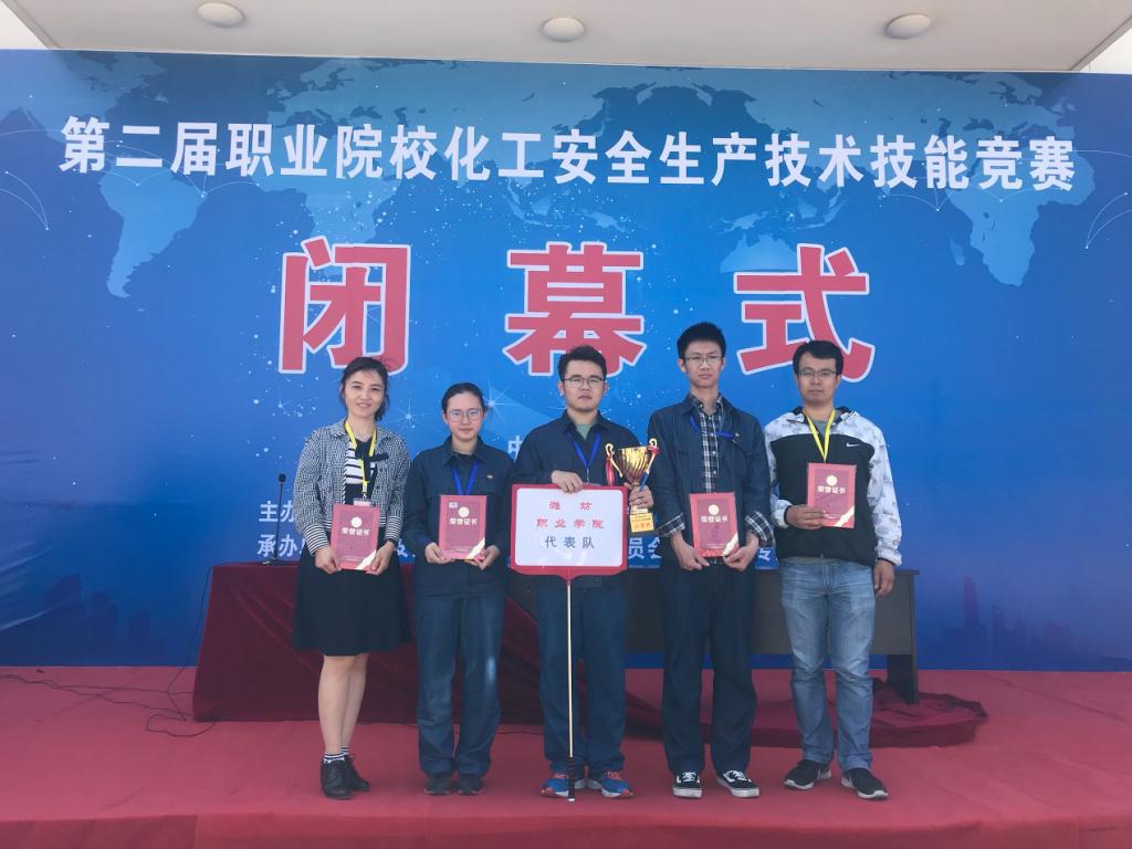5月22日至5月24日,由全国安全职业教育教学指导委员会、中国化学品安全协会主办,全国安全职业教育教学指导委员会化工安全专业分委员会承办,华北科技学院、秦皇岛博赫科技开发有限公司协办的2018年全国职业院校化工安全生产技术技能竞赛在秦皇岛博赫科技园举办。此次大赛共有45支代表队135名选手参加,bv伟德化学工程学院参赛学生胡恩政、陈彦霖和宋梦圆获得团体二等奖,获得B赛项全国第三名,两名教师获优秀指导教师称号。