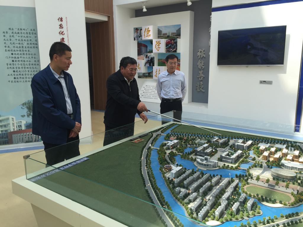 在学院建设成果展室,王家爱汇报了学院滨海校区整体规划、发展建设情况,详细介绍了近年来学院在教学、科研、技能大赛、学生培养、对外合作交流等方面取得的成果;在信息工程学院和农林科技学院的大学生创业中心,相关负责同志介绍了大学生创新创业有关情况。在机电、汽车实训车间,李春光详细了解了学生实习实训情况。