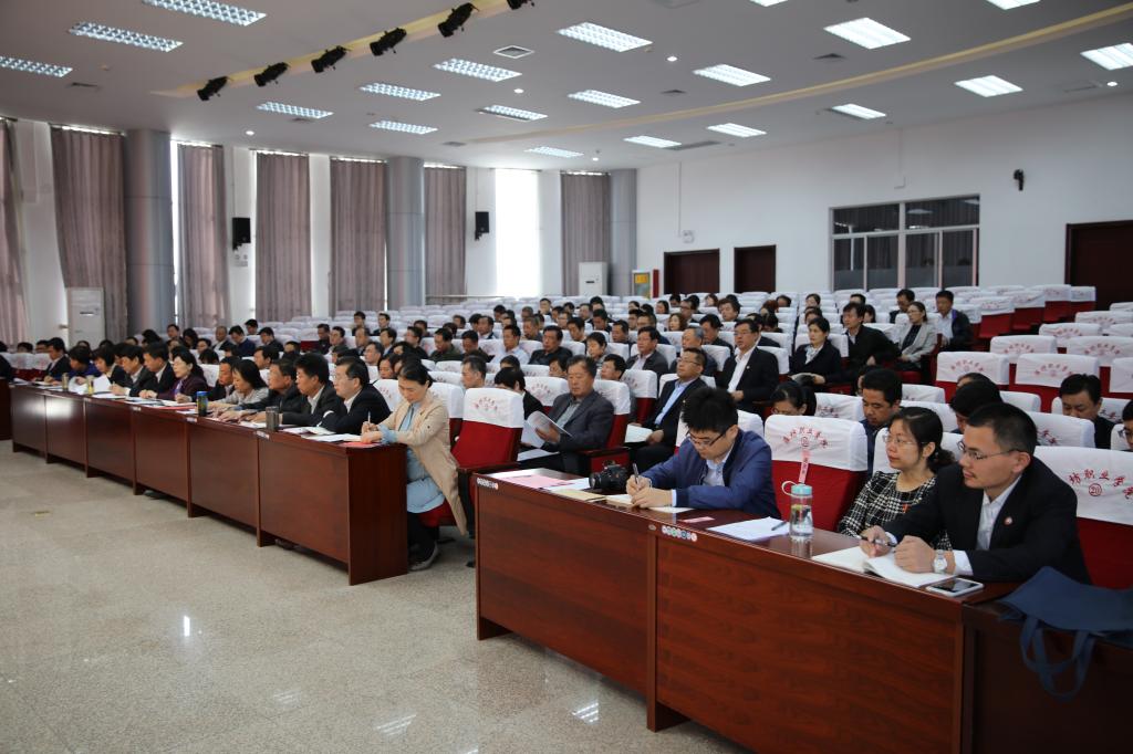 4月20日上午,学院2018年党建工作会议在滨海校区清泽楼报告厅召开。学院党委书记张洪全讲话,党委副书记、院长王家爱主持会议,党委副书记宋桂言总结部署工作,副院长赵君堂、贺志强、李瑞昌,纪委书记郭晓辉,党委委员、办公室主任谭明出席,各党支部委员、副科级以上干部180余人参加会议。