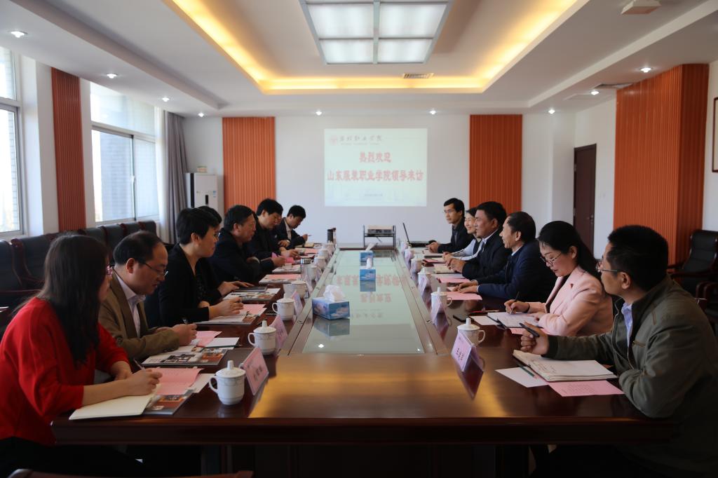 4月11日,山东服装职业学院院长戴磊、党委副书记贾军一行9人,到bv伟德进行考察交流。学院院长王家爱、副院长李瑞昌会见了来访客人。团委学生工作处、教务处、科技处、财务处等部门相关负责同志陪同座谈交流。