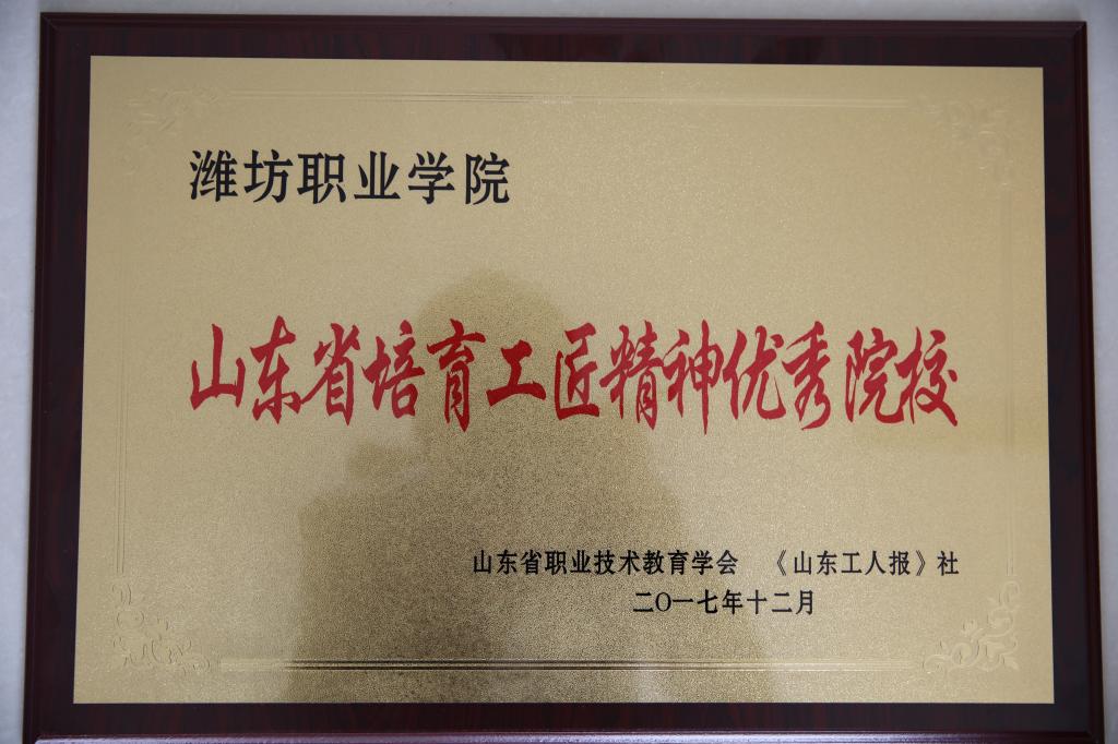 bv伟德获“山东省培育工匠精神优秀院校”荣誉称号
