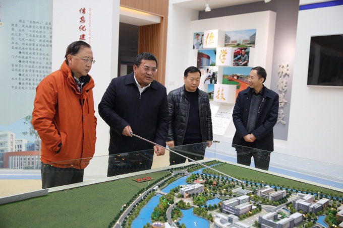 杨民刚一行观看了学院宣传片,参观了学院成果展室、信息工程学院大学生创业中心、智能温室大棚及部分二级学院实验实训中心。(王锋华供稿)