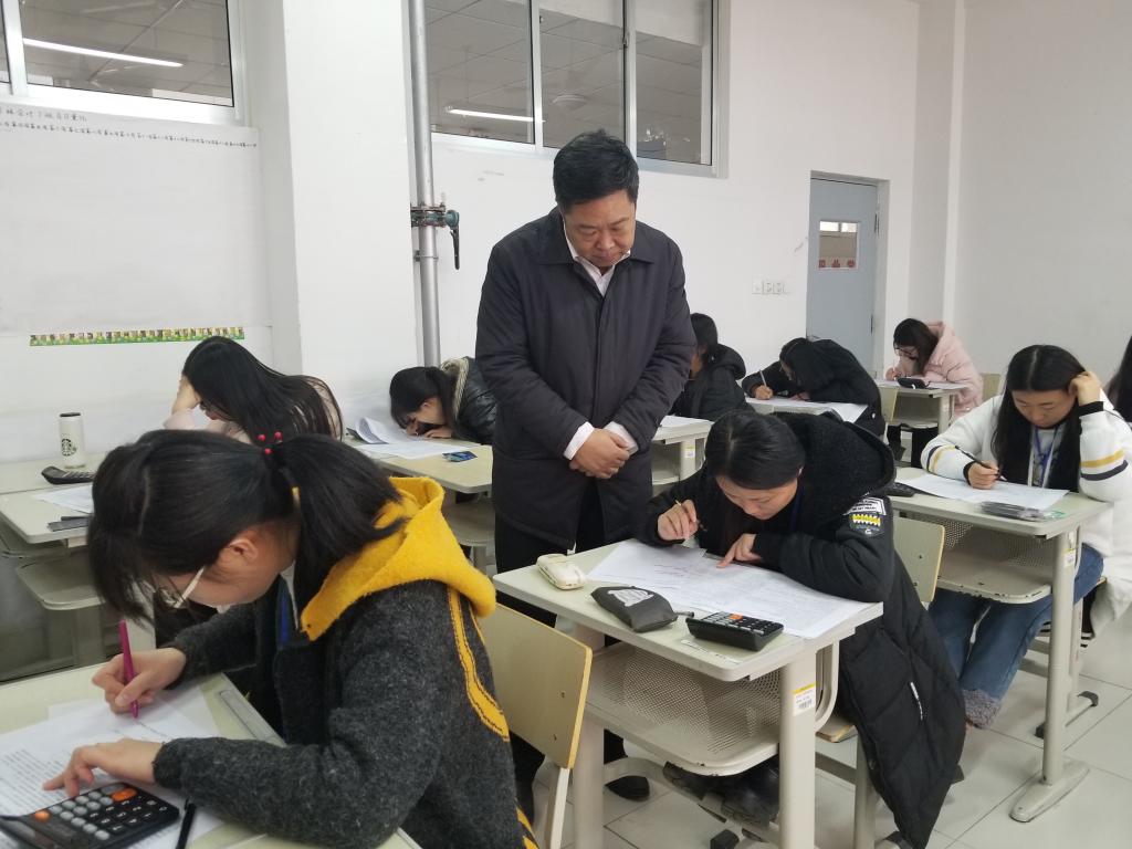 在教学楼,张洪全对正在进行的期末考试进行了巡视,对相关考场的考试课程、考生人数、监考教师履职、考生纪律、试卷命题等进行了检查,并认真了解了考风考纪宣传教育、考场秩序等情况。张洪全强调要进一步提升教学管理的信息化水平,把严肃考风考纪作为立德树人的重要环节抓实抓细,把培育学生诚实守信、公平竞争作为养成教育的重要内容,切实形成以考风促学风、以学风促教风的良好氛围。张洪全对各二级学院的走廊文化建设给予了充分肯定,希望要结合专业实际,继续丰富内容、办出特色,发挥好环境育人作用。