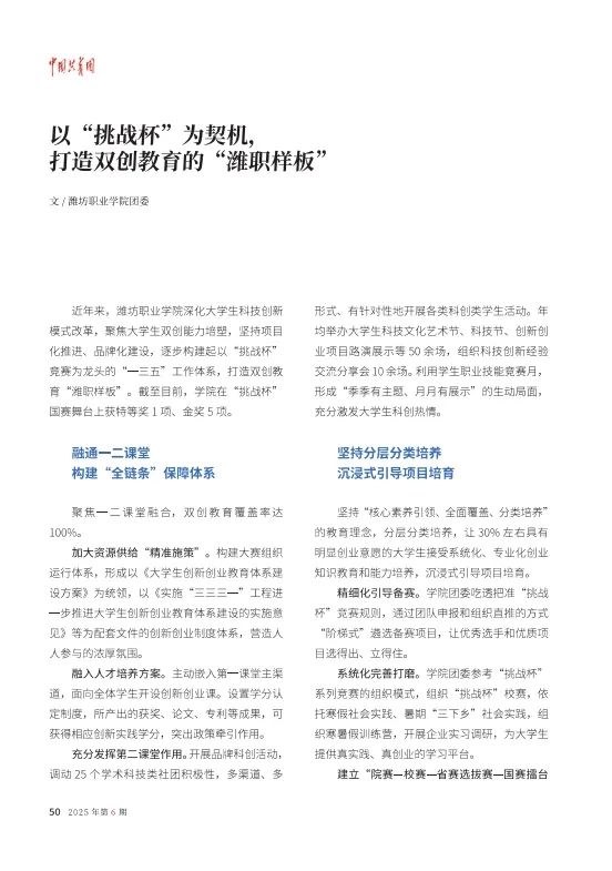 [中国共青团]以“挑战杯”为契机,打造双创教育的“潍职样板”