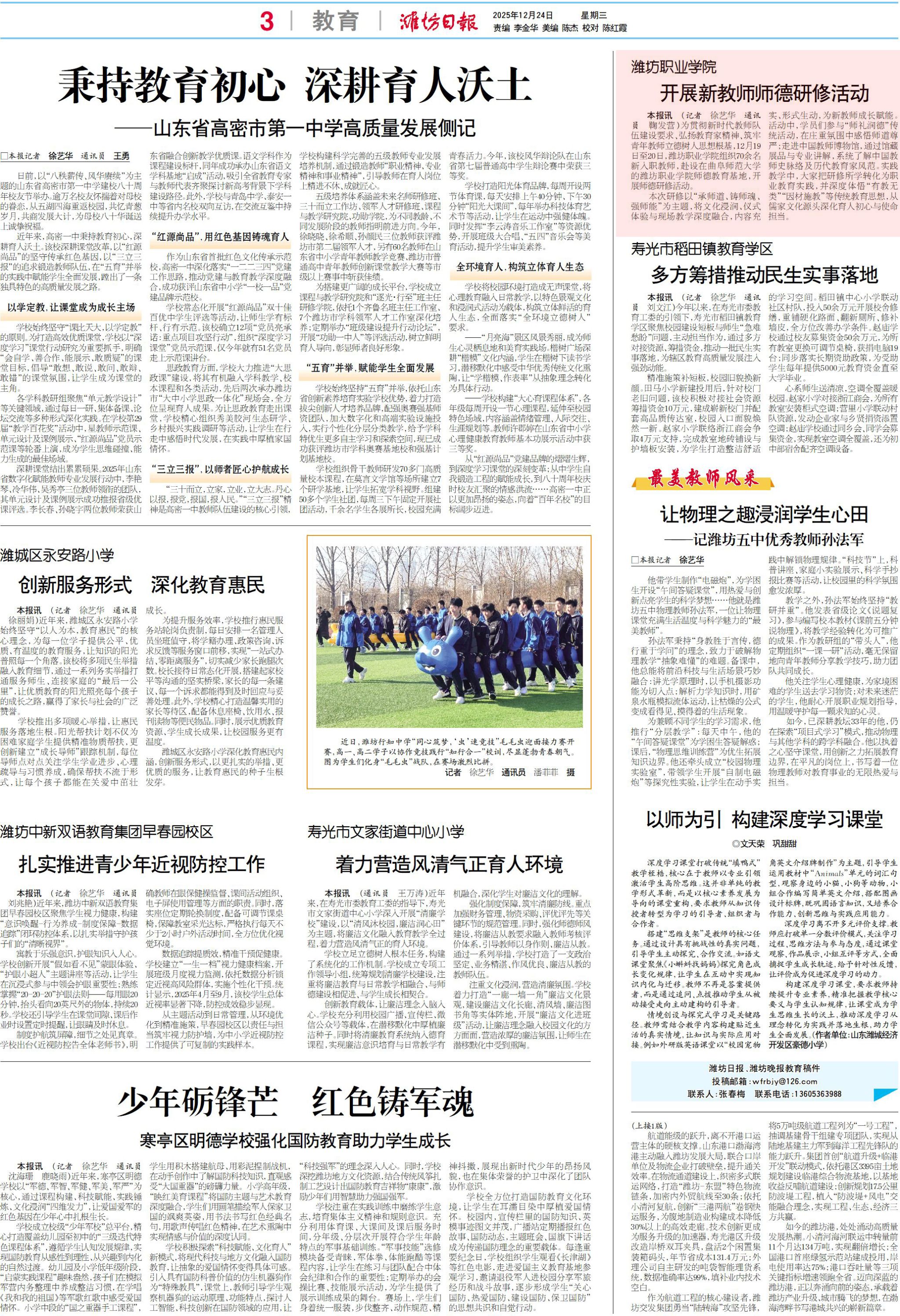 【潍坊日报】bv伟德国际1946开展新教师师德研修活动
