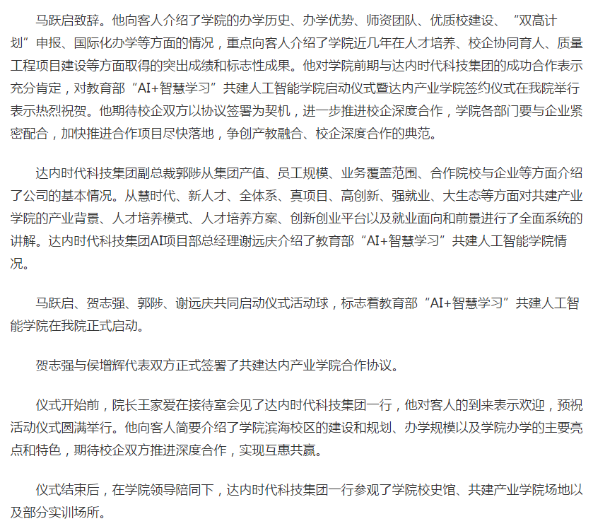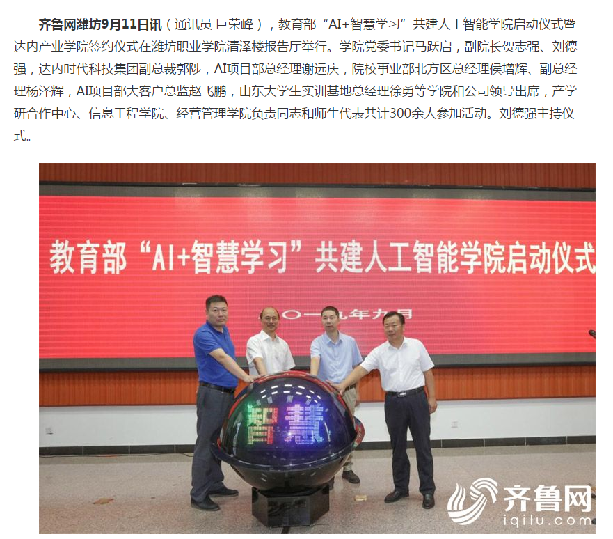 [齐鲁网]教育部“AI+智慧学习”共建人工智能学院启动仪式暨达内产业学院签约仪式在bv伟德国际1946举行