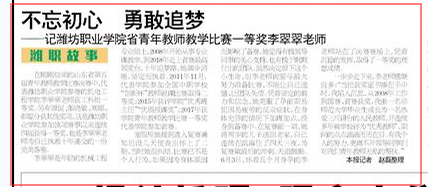 [齐鲁晚报]不忘初心 勇敢追梦 记bv伟德国际1946省青年教师教学比赛一等奖李翠翠老师