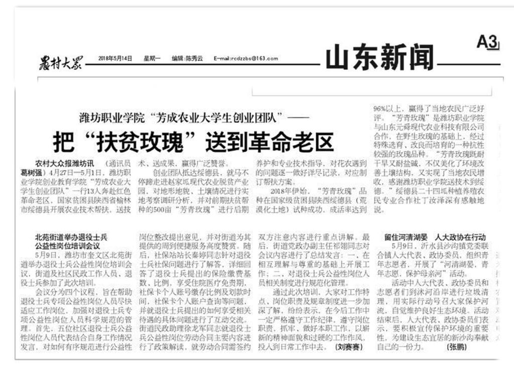 [农村大众]bv伟德国际1946“芳成农业大学生创业团队”把“扶贫玫瑰”送到革命老区