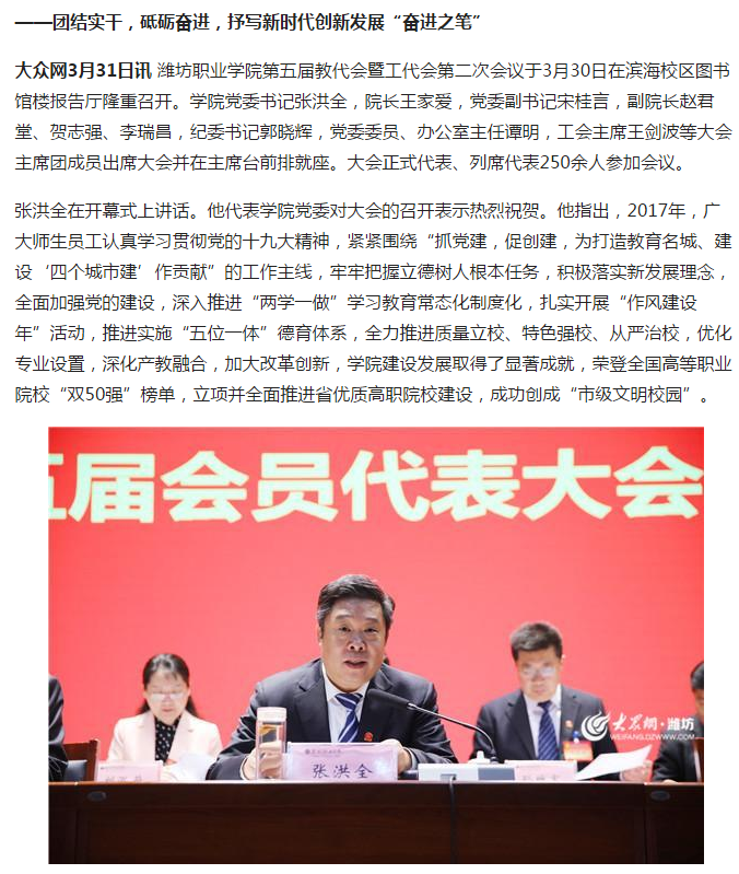 [大众网]bv伟德国际1946第五届教代会暨工代会第二次会议隆重召开