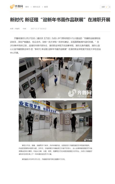 [齐鲁网]新时代新征程“迎新年书画作品联展”在潍职开展