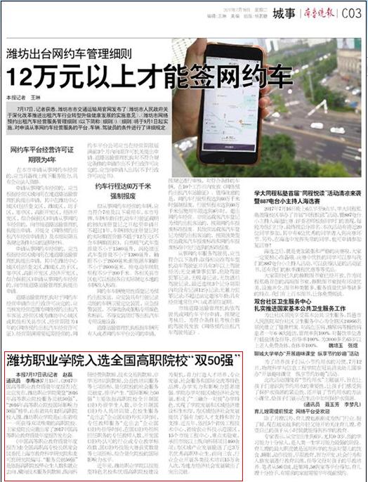 齐鲁网潍坊7月15日讯(记者李涛通讯员李寿冰)15日,《2017中国高等职业教育质量年度报告》在北京发布,bv伟德国际1946荣登“2016年高等职业院校服务贡献50强”、“2016年高等职业院校国际影响力50强”榜单,山东省共有12所高职院校入围,bv伟德国际1946是山东省唯一一所获得双项殊荣的高职院校。