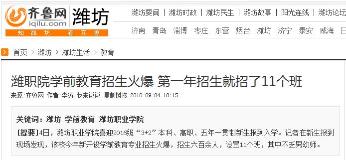 潍职院学前教育招生火爆 第一年招生就招了11个班