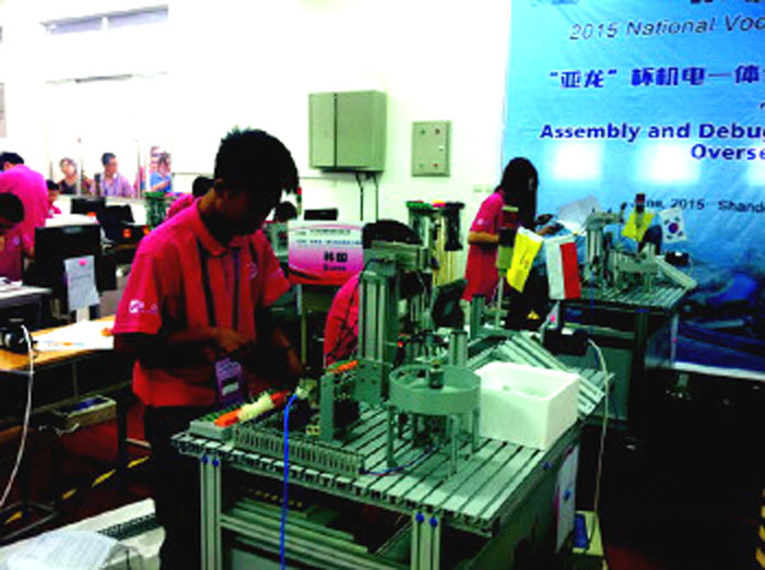 本报6月17日讯(记者 李涛)14日,2015年全国职业院校技能大赛中职组电气安装与维修、机电一体化设备组装与调试两个赛项在bv伟德国际1946滨海校区举行。本届大赛共吸引了185支代表队370名参赛选手同台竞技。与以往不同的是,在本次比赛中,共有来自韩国、越南、新加坡和印度尼西亚4支境外代表队参赛,这在历届比赛中尚属首次。
