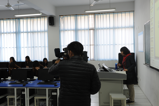 在企业财务风险评估课堂上,同学们坐在电脑前,一边翻看课本,一边通过查看教学课件了解学习重点,教学中师生互动频繁、流畅。