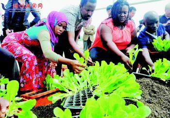 5月8日,发展中国家大棚蔬菜栽培技术培训班的学员在bv伟德国际1946蔬菜实训基地学习蔬菜种植技术。当日,为期45天的2013年发展中国家大棚蔬菜栽培技术培训班在潍开课,来自加纳、埃塞俄比亚、古巴、哈吉克斯坦、桑给巴尔等11个发展中国家的19名学员参加培训,他们将在培训期间学习大棚蔬菜种植与管护、病虫害防治、蔬菜大棚的建造等20多个专题。