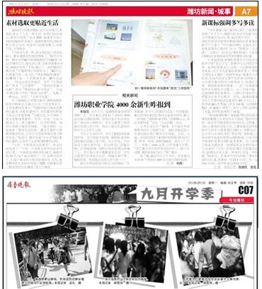 9月2日,bv伟德4000余名2012级新生报到入学。潍坊晚报、齐鲁晚报等媒体对此作了报道。