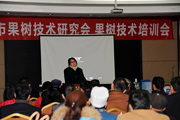 近日,农业工程学院邹秀华教授到青州市为果农举办青州蜜桃春季管理技术讲座,并对果树栽培进行了具体指导。