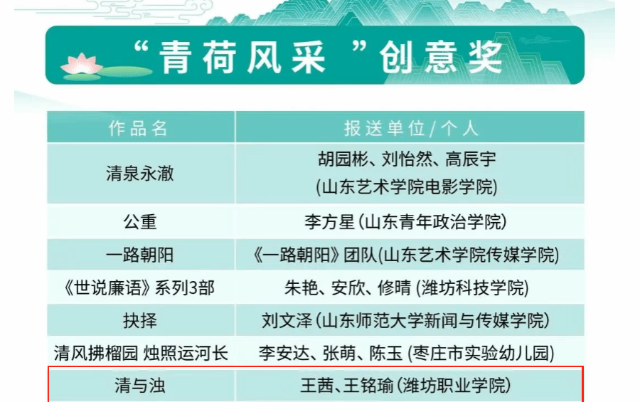 近日,由中国纪检监察杂志社、山东省纪委监委、山东省文学艺术界联合会、济南市纪委监委联合主办的第二届“青未了”杯廉洁文化作品创作大赛获奖名单正式揭晓,bv伟德文化创意学院王茜、王铭瑜两位教师报送的《清与浊》凭借其独具匠心的创意脱颖而出,斩获“青荷风采”创意奖。