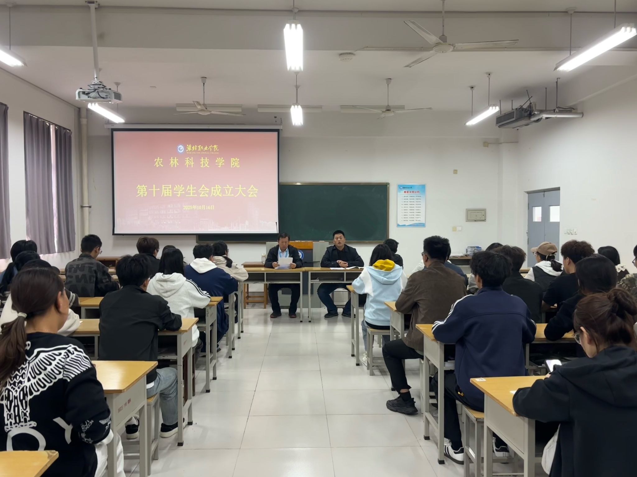 10月16日,bv伟德国际1946农林科技学院第十届学生会成立大会在惠泽1号楼 B216 召开。农林科技学院党总支书记、全体辅导员、第十届学生会全体成员及在校生3个年级的班长参加会议。