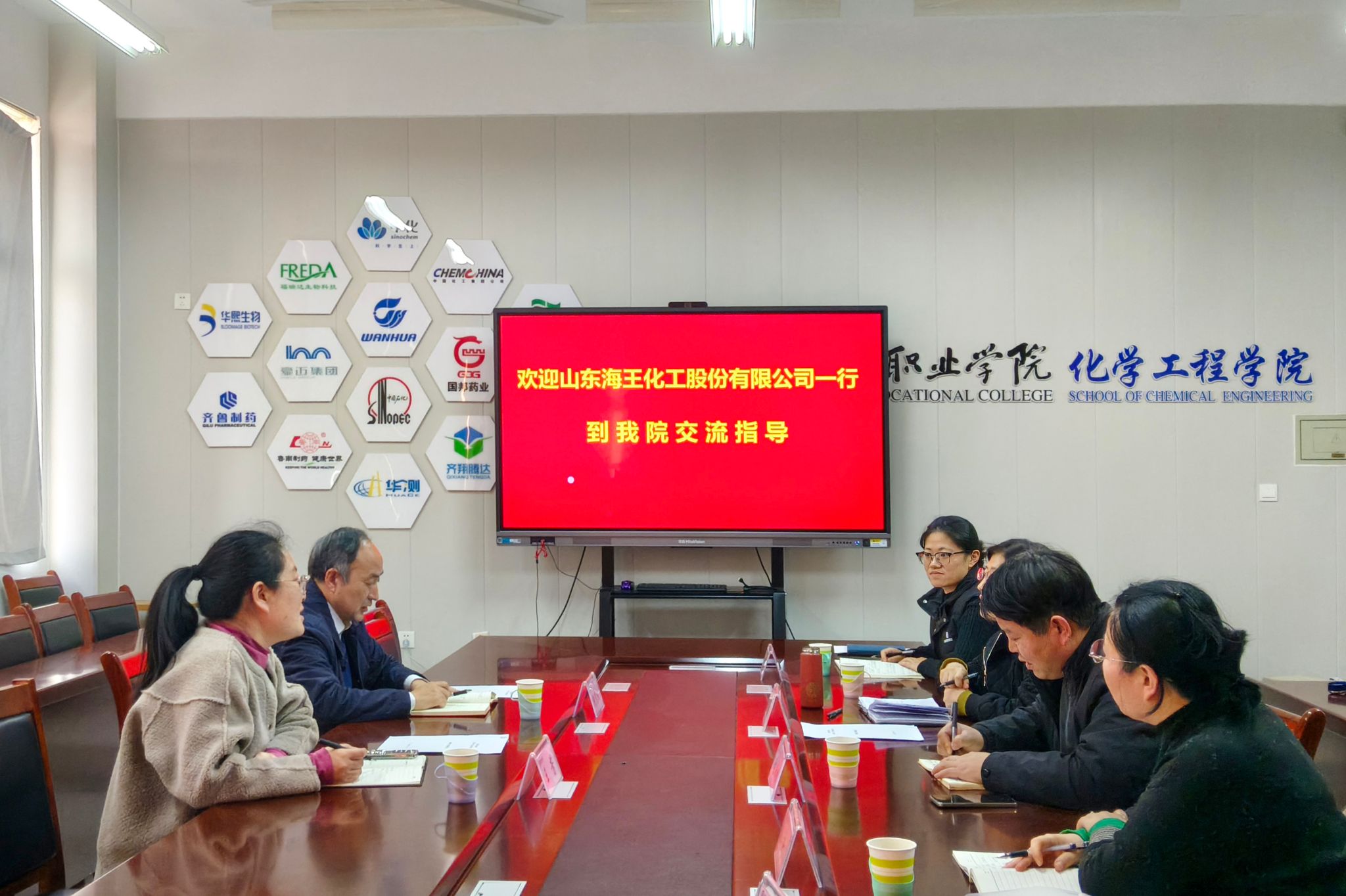 12月9日下午,山东海王化工股份有限公司党委副书记代传阳、人力资源部部长王芳一行2人到访化学工程学院,开展合作深化专项交流。此次洽谈是前两次访企拓岗活动的成果延续,bv伟德党总支负责人、教学负责人及化工类专业骨干教师参会,双方围绕战略合作协议内容可行性、实训基地建设、定向培养、职教出海等议题深入磋商,达成多项共识。