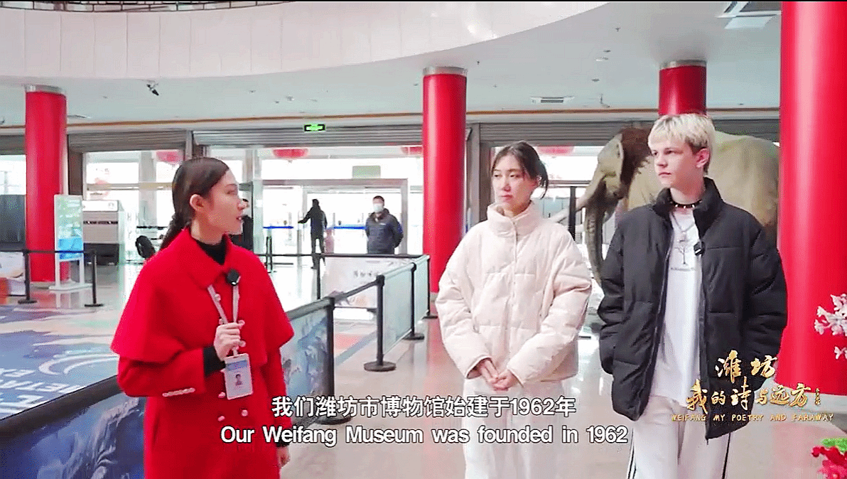 在潍坊市博物馆,国际学生们仿佛穿越时空,与历史对话。他们驻足于琳琅满目的馆藏精品前,惊叹于中华文明的博大精深。面对瓷器、青铜器以及“潍坊象化石”等珍贵文物,他们认真聆听讲解,感受着历史文物的鲜活气息,体悟着中华文明的源远流长。