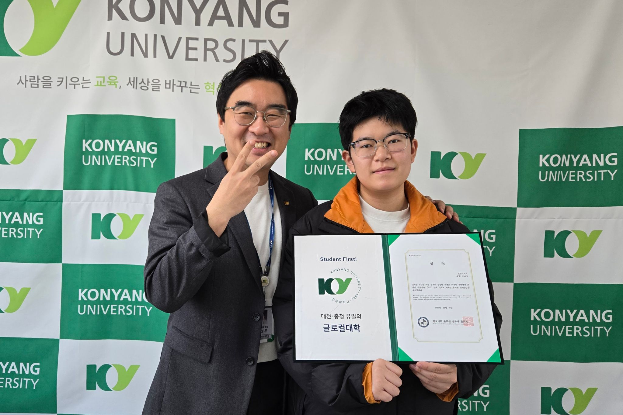 这一韩国国家级奖项,不仅是鲍美婷同学个人勤勉奋进的体现,更是bv伟德国际1946与韩国建阳大学合作办学成果的直接印证。此次获奖得益于两校共同构建的无缝衔接课程体系,在国内阶段,bv伟德系统性开展韩语强化与跨文化辅导,有效帮助学生突破留学壁垒,为其深度参与学术实践、脱颖而出创造了关键条件,并且贯穿培养全程的成熟共育机制与双向资源支持,更全方位护航学生成长,真正实现了“1+1>2”的协同育人效果。