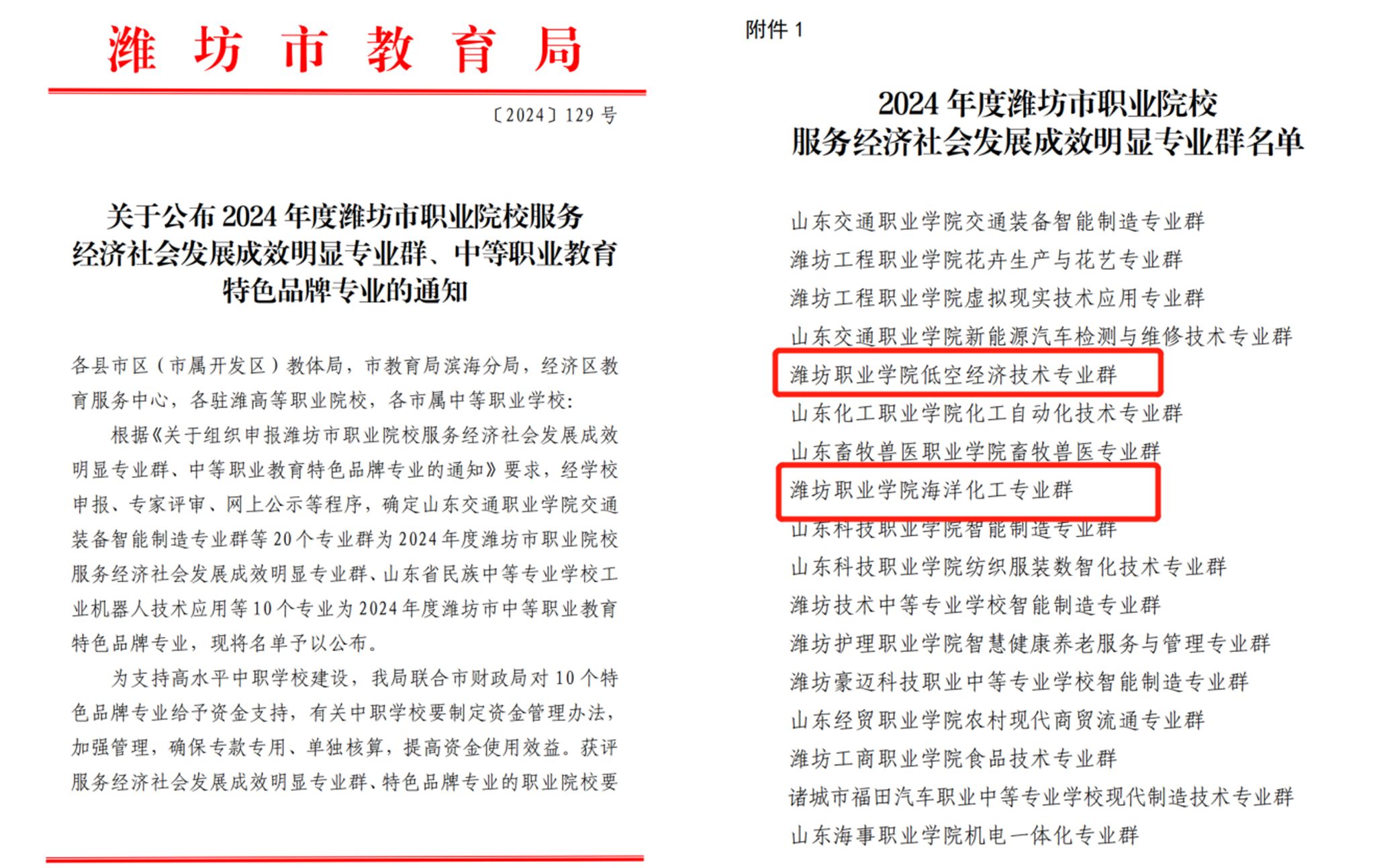 12月6日,潍坊市教育局行文公布了2024年度潍坊市职业院校服务经济社会发展成效明显专业群名单,bv伟德低空经济技术和海洋化工2个专业群入选。