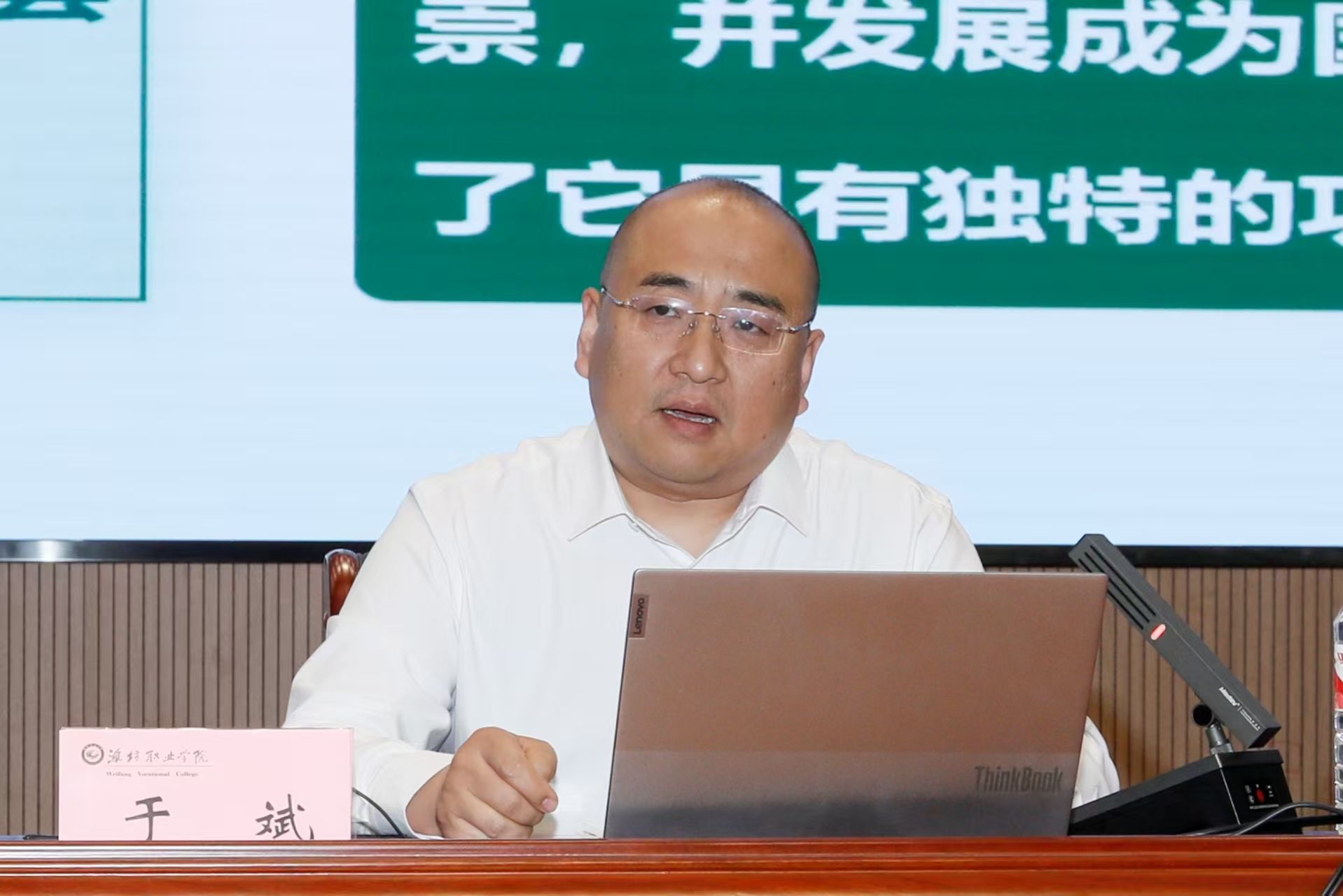 4月25日下午,bv伟德国际1946在综合楼1楼报告厅召开第一场产业教授校企融合系列活动。非物质文化遗产传承人张荣军先生、潍坊青泉农业科技有限公司研发负责人于斌等两位产业教授分别进行了精彩分享。学院党委委员高凌云,副院长付一明出席活动,各教学部门相关负责同志、师生代表360余人参加活动。