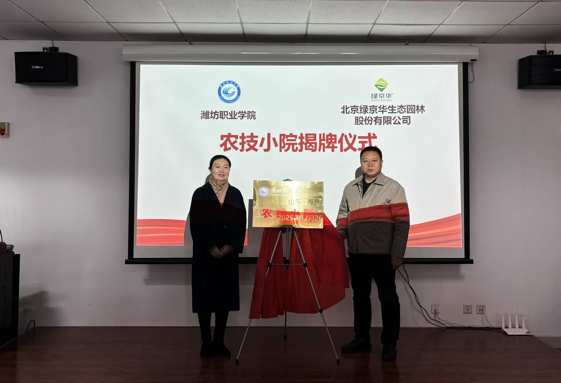 会上,学院与山东省寿光蔬菜产业集团有限公司签署了共建设施种植业现代产业学院的合作协议,并与山东永盛农业发展有限公司、北京绿京华生态园林股份有限公司举行“农技小院”揭牌仪式。