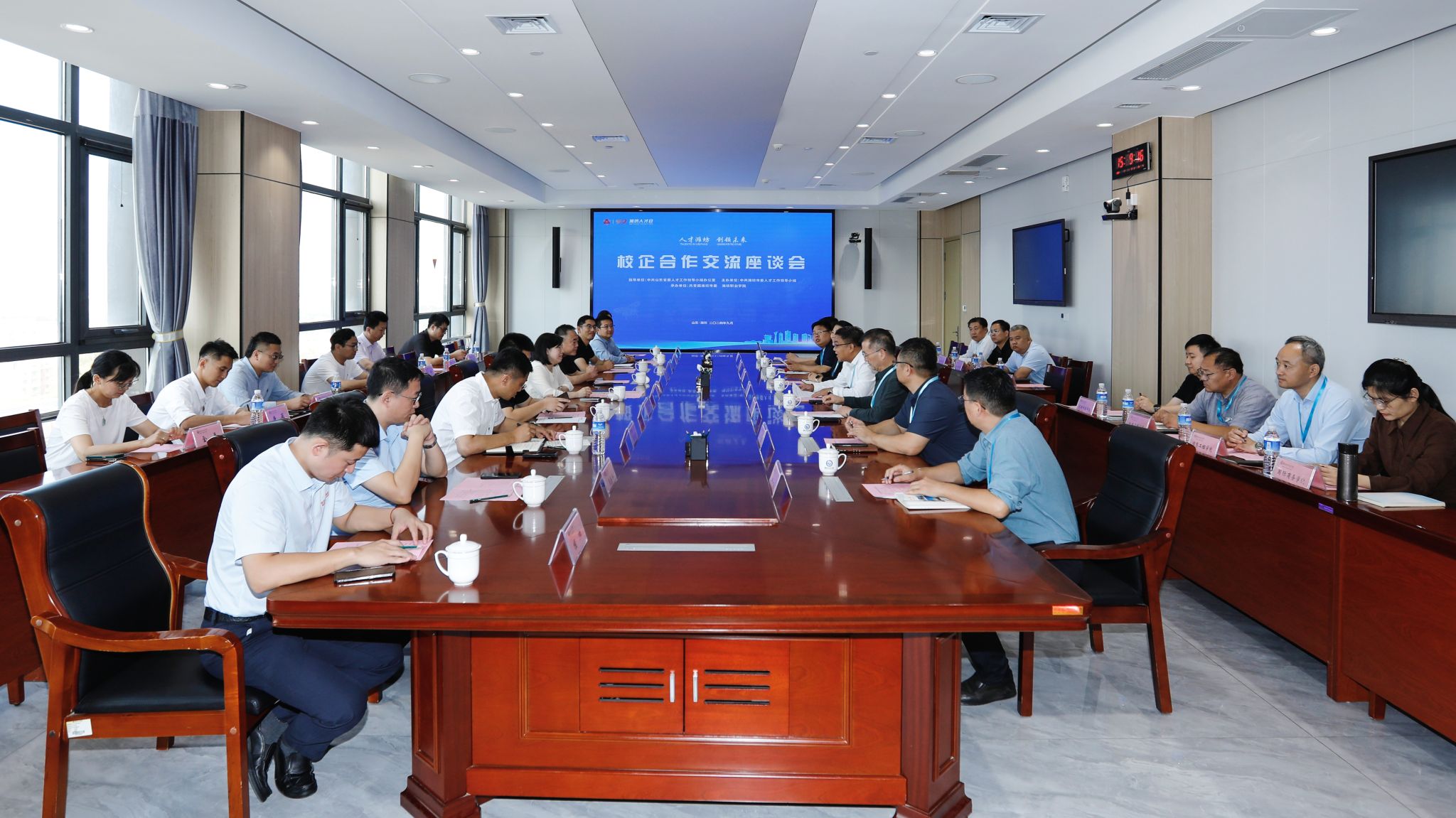 为推进青年发展友好型城市建设,更好发挥群团组织的桥梁纽带作用,加强企业与高校之间的互联互通,9月27日下午,学院举行潍坊市青联青企协进校园活动。团潍坊市委书记李飞,团潍坊市委统战部部长、四级调研员李涛,团潍坊市委青发部负责人张健宁,市青联、青企协13名企业家出席。学院党委副书记韩瑞东,党委委员、副院长任培华,党委委员、办公室(统战部)主任(部长)刘志艳,党委委员、组织人事处(离退休工作处)处长于涛,团委负责同志、科技处负责同志和各二级学院分管产学研负责同志参加活动。