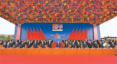 王沪宁发表讲话。(全文见第三版)他说,1965年9月,在党中央亲切关怀和党的民族政策光辉照耀下,西藏自治区宣告成立。这是西藏发展史上具有划时代意义的大事,巩固了西藏和平解放和民主改革的伟大成果,实现了西藏社会制度的历史性跨越。60年来,西藏经济社会全面发展,民族区域自治制度成功实践,民族团结日益巩固,各族人民生活蒸蒸日上,充分展现了中国共产党领导的坚强力量,充分展现了我国社会主义制度的显著政治优势。