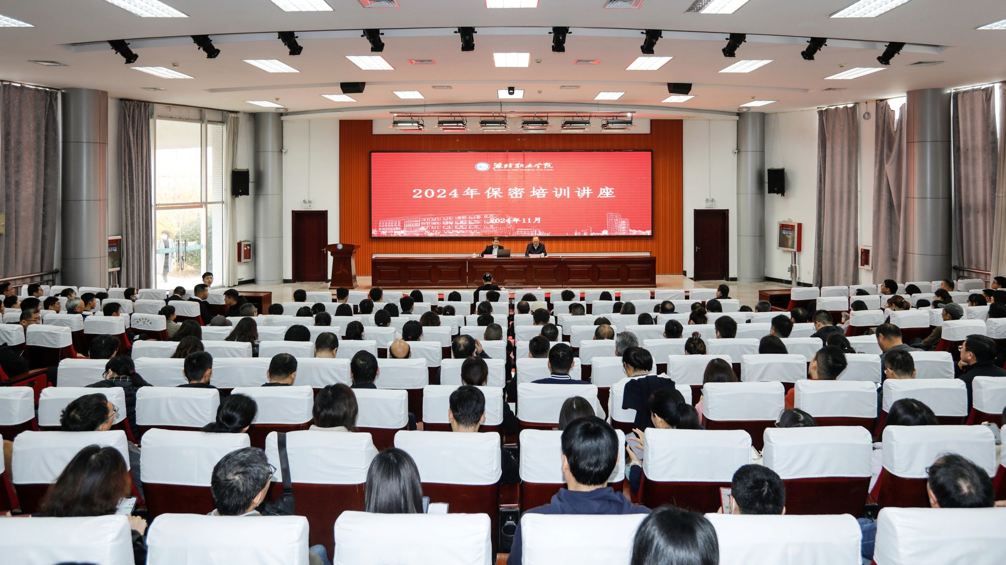 11月15日上午,为深入学习贯彻新修订的《保密法》及实施条例精神,提升师生保密工作意识和能力,学院邀请市委办公室保密二科科长王太东作《认清保密形势、提升保密能力、做好新形势下保密工作》的讲座。学院党委委员、副院长赵宏坤,党委委员、办公室(统战部)主任(部长)刘志艳出席,学院各部门、二级学院副科级以上干部代表、专职辅导员、近三年新进教师等270余人参加。