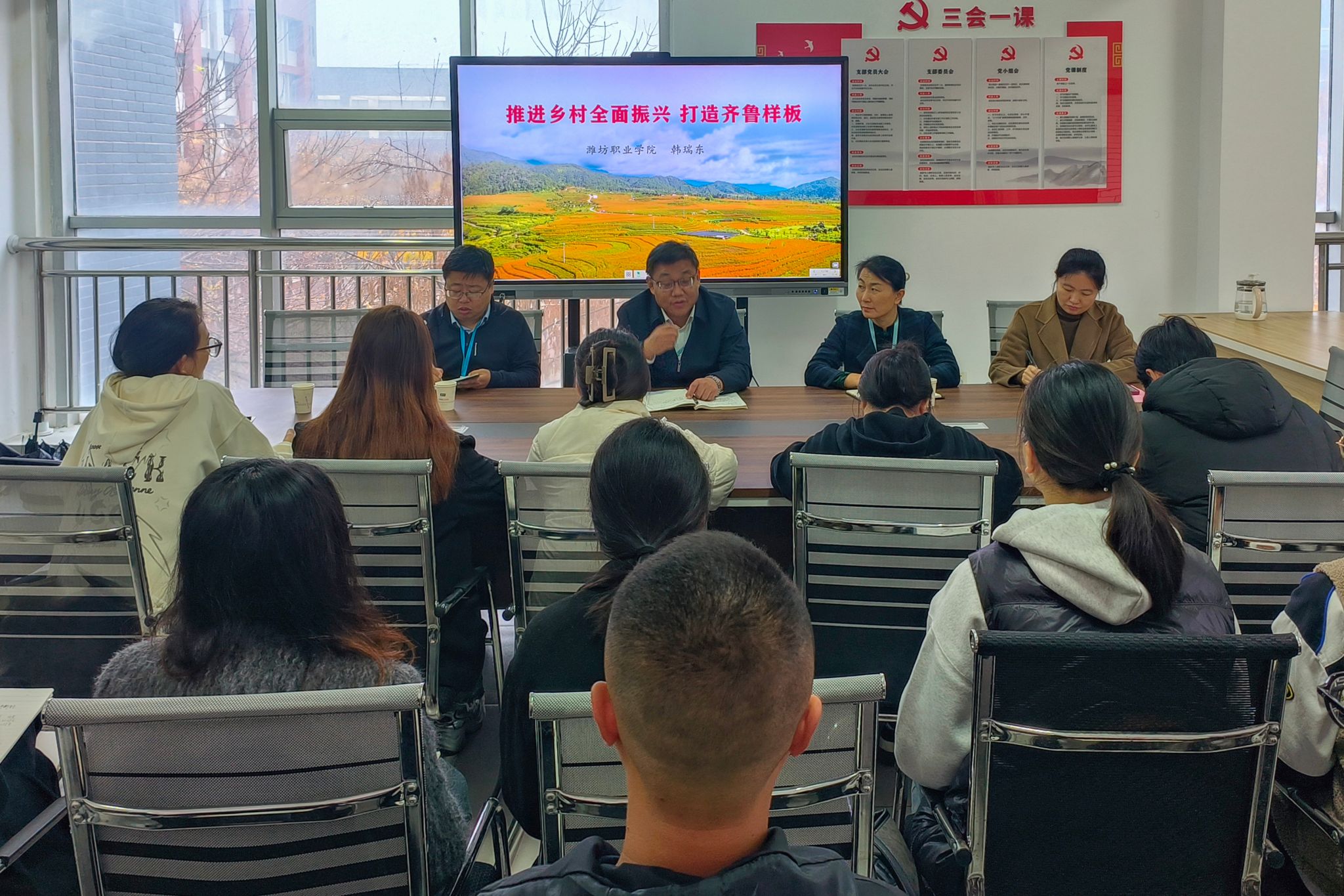 为深入学习贯彻习近平新时代中国特色社会主义思想,深入实施“时代新人铸魂工程”,加强铸牢中华民族共同体意识教育,常态化深入学生社区,及时解决学生思想、学习、生活、发展等实际问题,有效提升新质思政工作的实效性,11月13日上午,学院党委副书记韩瑞东深入农林科技学院秋实社区为同学们讲授思政课、体察学情、关爱学生、释疑解惑。学院党委委员、办公室(统战部)主任(部长)刘志艳,团委学生工作处负责同志,农林科技学院主要负责同志、教师及学生代表参加了此次活动。