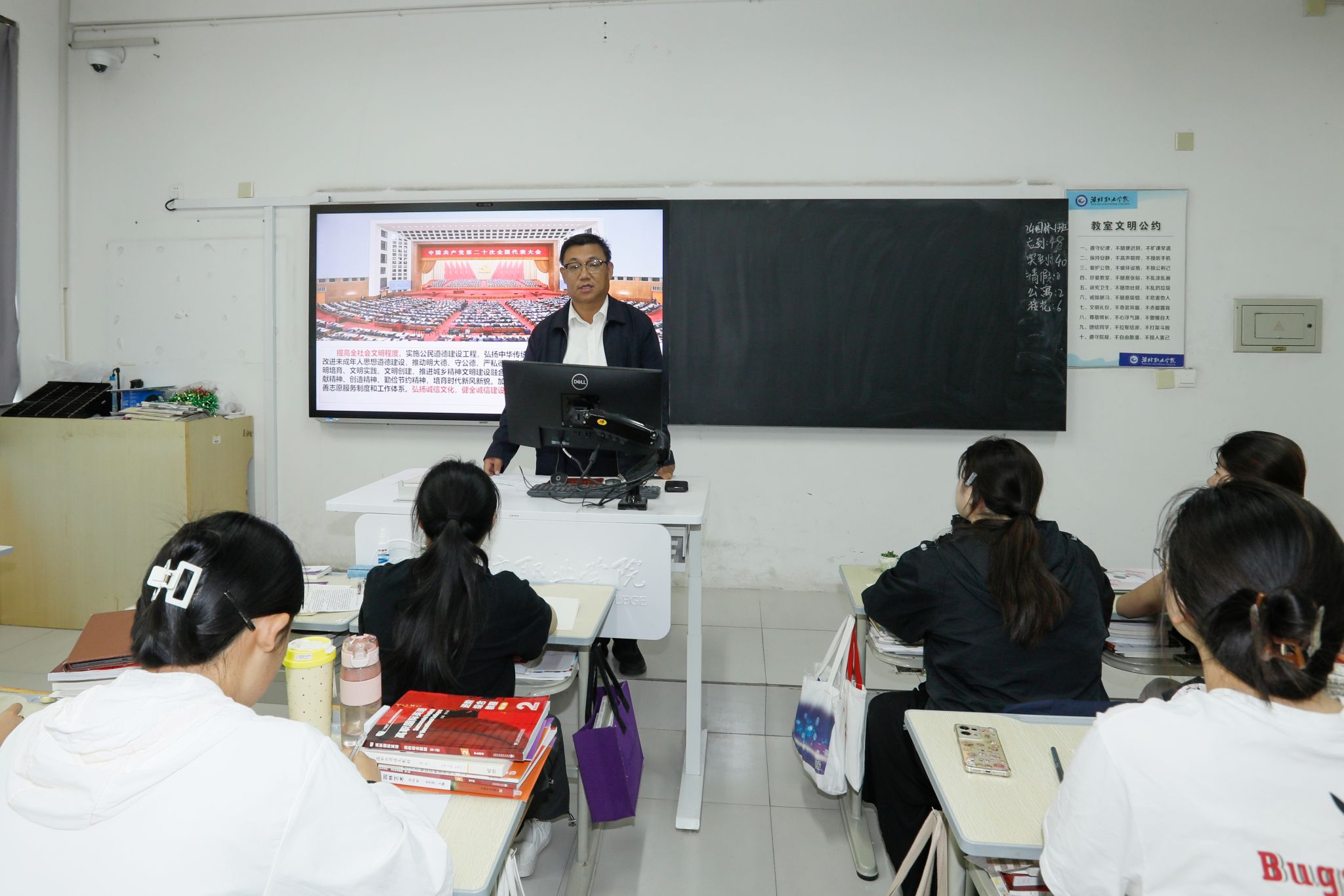 其间,马克思主义学院教师以“争做新时代诚信大学生”为题,从“诚信之义、诚信之历、诚信之用、失信之害、诚信之道”五个方面,以教学班为单位为大一学生集中授课。