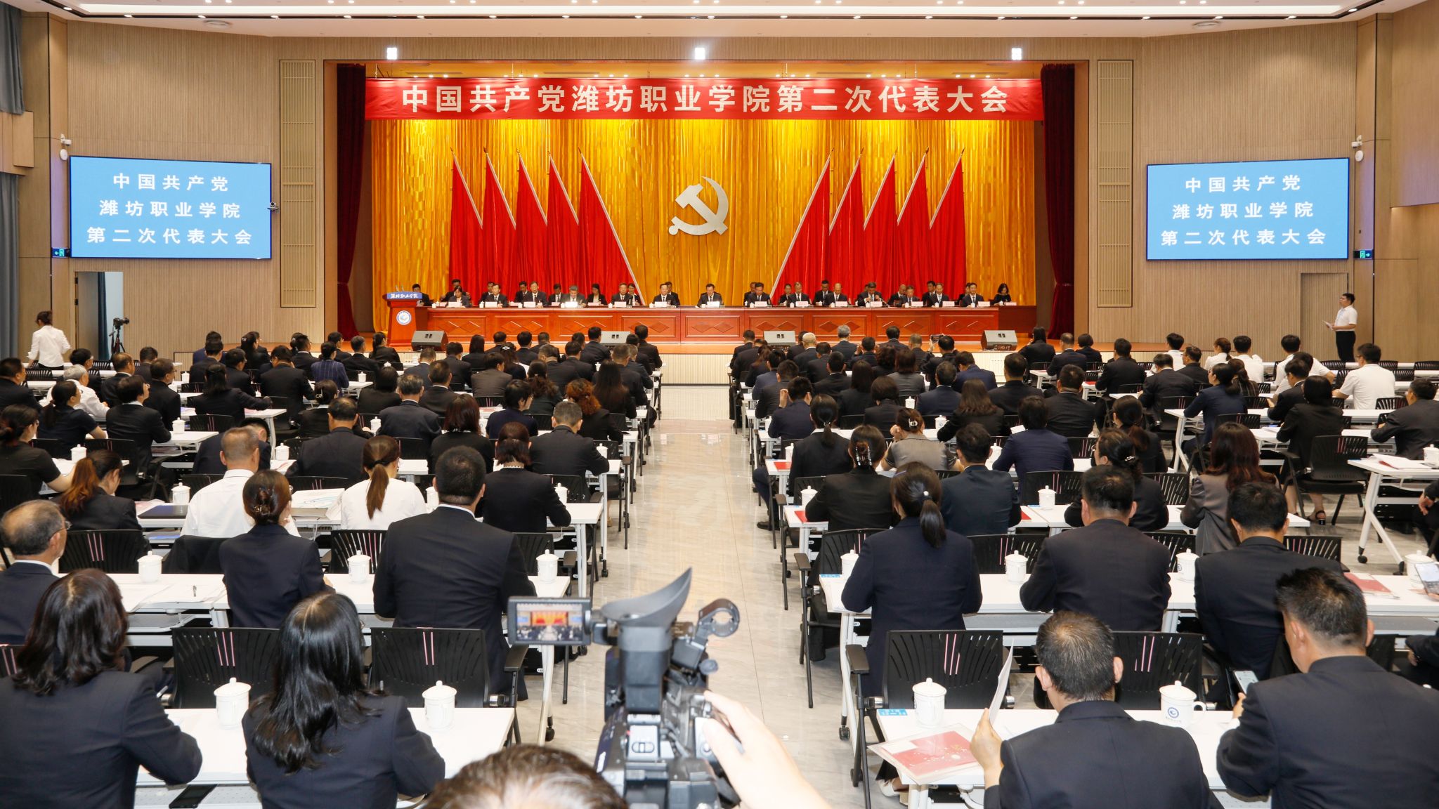 大会在庄严的国歌中拉开帷幕。杨建华代表潍坊市委、潍坊市委教育工委对大会召开表示祝贺。他充分肯定学院在“双高计划”建设、办学质量考核、产教融合等方面的突出成绩,并希望学院不断强化政治引领、筑牢思想根基,加强队伍建设、凝聚发展合力,提升育人质量、赋能地方发展,为潍坊打造现代化教育强市和区域经济社会发展作出更大贡献。