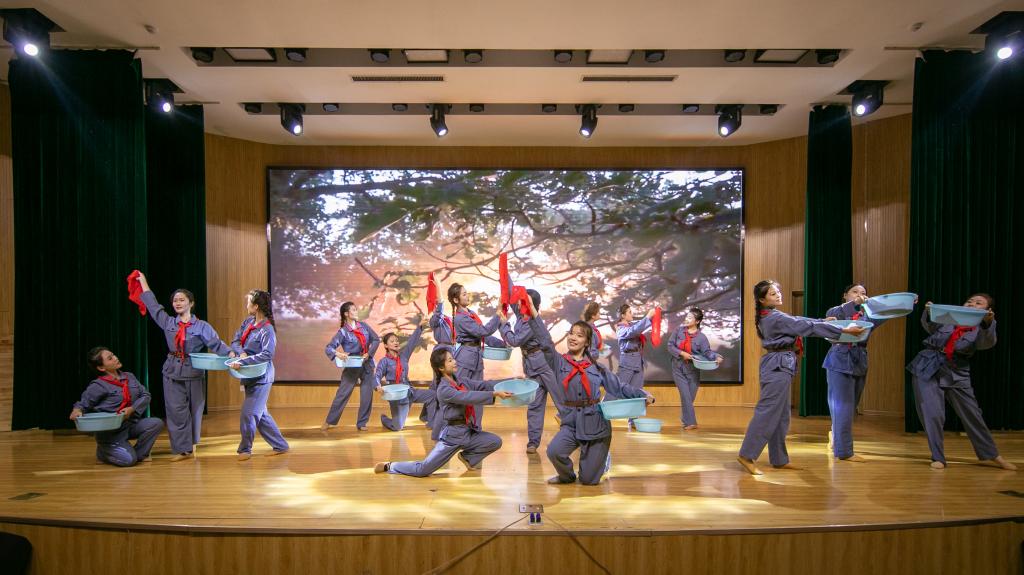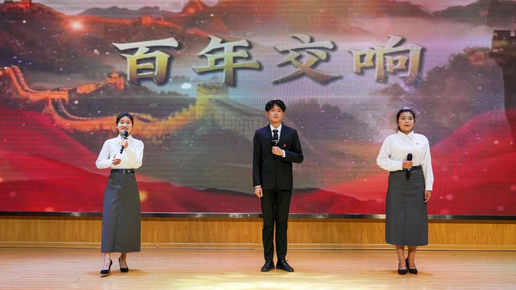 学院师生带来了舞蹈《红旗颂》《小井长歌》《奉献》、朗诵《红船》《百年交响》、歌曲《谁不说俺家乡好》《举杯吧,朋友》、党史情景剧《传颂红色家书,感悟家国情怀》等节目,回望初心使命,告慰历史和先辈,表达了对党的无限感激和崇高敬意,展现了“听党话、感党恩、跟党走”的决心。会议最后,学院党政领导班子、各部门主要负责同志合唱《团结就是力量》。